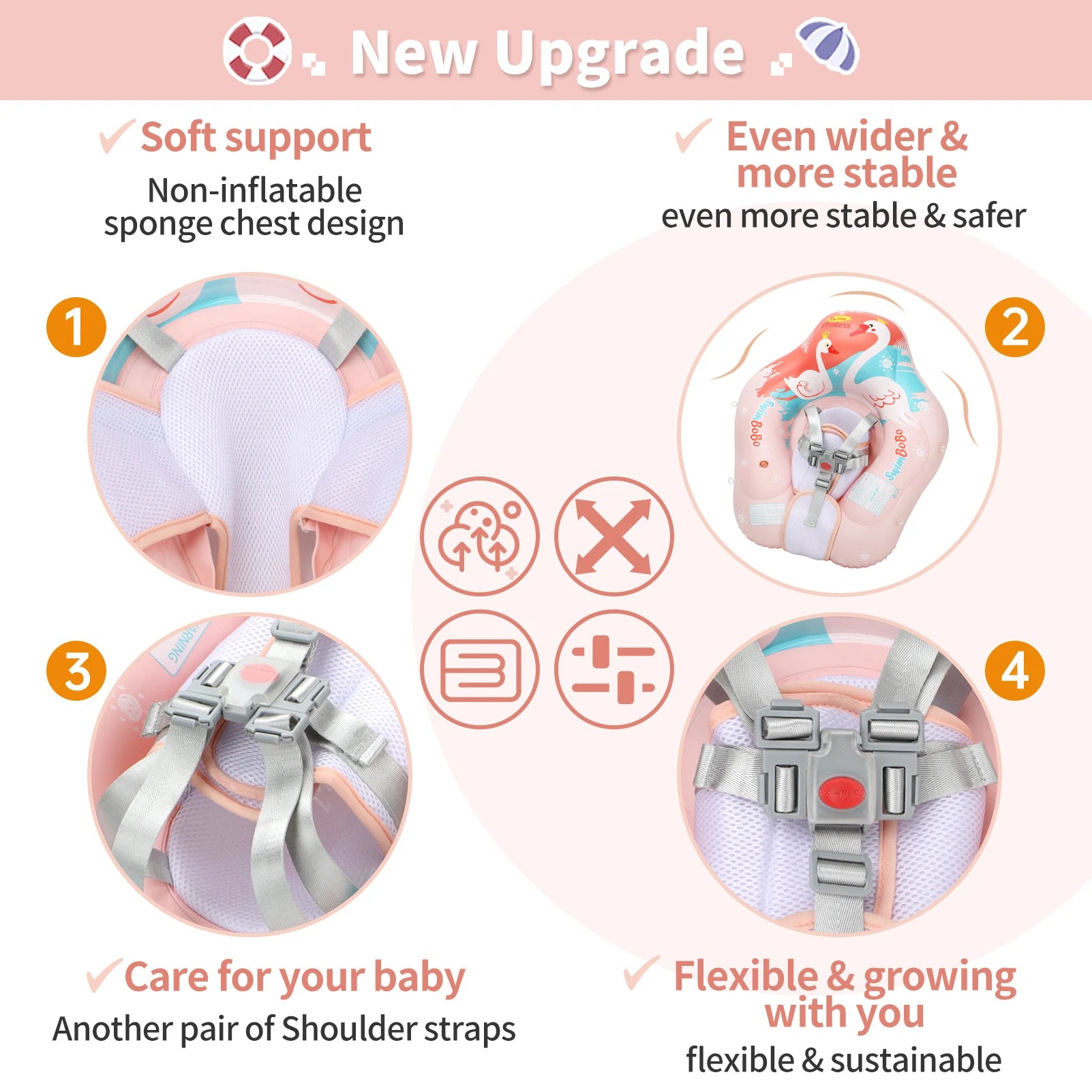 Engineered with safety in mind, the float provides reliable support, allowing infants to enjoy water activities without parental worry.